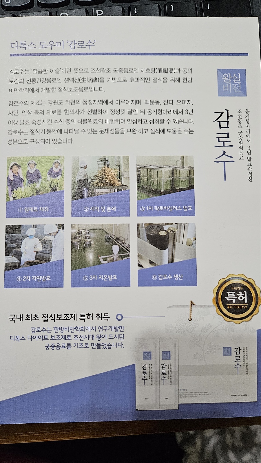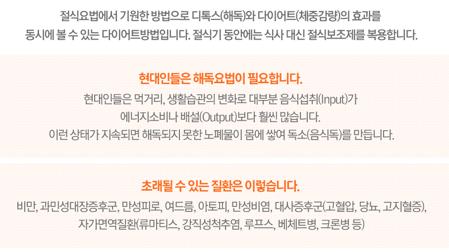 절식기 동안 마시는 감로수는 국내최초 절식 보조제 특허를 취득하였고 한방비만학회에서 연구 개발한 것이다.