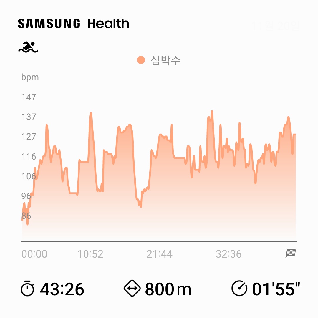 유산소운동 : 수영 43분