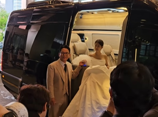 차에서 내려 웨딩홀로 입장하는 두 사람의 모습은 마치 로맨스 영화의 한 장면 같았다는 반응이 많았습니다.