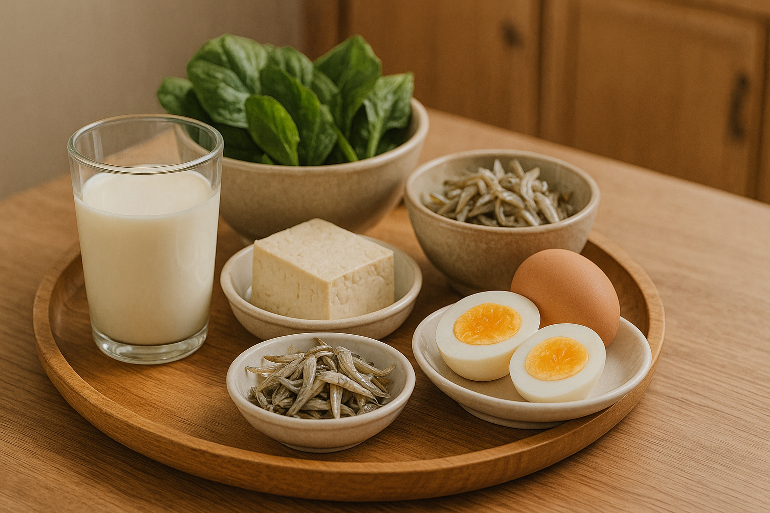 우유, 멸치, 시금치, 달걀노른자, 두부 등 식단에서 꾸준히 섭취하는 것이 가장 좋습니다.