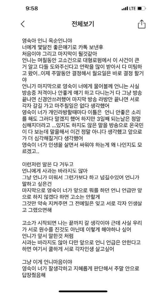 물론, 기사에 따르면 옥순이 영숙을 고소하려고 마음먹은 이유는 허위사실 유포와 비방이었습니다. 옥순은 영숙이 개인 라이브 방송을 할 때마다 옥순에 대한 부정적인 이야기를 했다고 지적했습니다. 특히, 영숙이 "있지도 않은 말을 방송으로 온 국민이 다 보는데 말을 해서 이건 정말 아니다"라고 생각했다고 밝혔습니다. 이러한 행위는 옥순에게 심각한 명예훼손을 초래할 수 있으며, 이로 인해 옥순은 법적 대응을 고려하게 되었습니다.