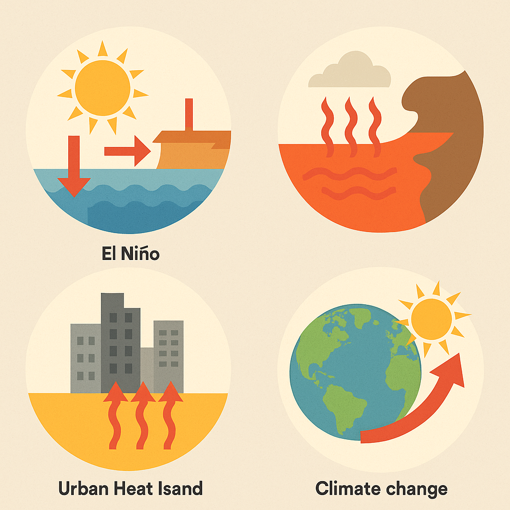 점점 높아지는 기온 상승은 단순히 여름이 더워진 것만이 아니라, 지구적 기후 변화, 엘니뇨, 도시 열섬이 결합해 만들어낸 결과입니다.