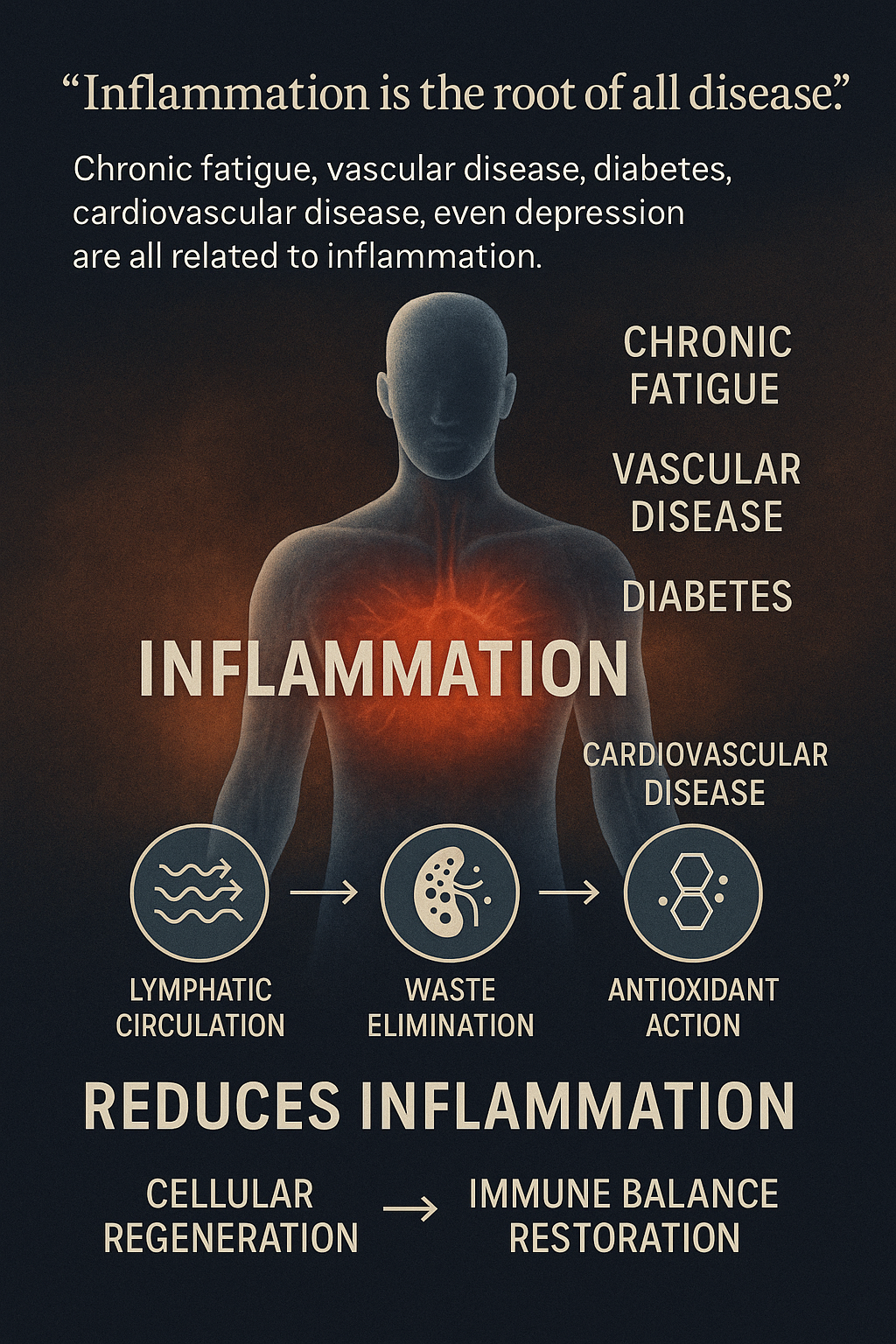 결국 몸의 ‘불’을 꺼주며 전신 염증 해소 → 세포 재생 → 면역 균형 회복의 순환이 일어납니다.