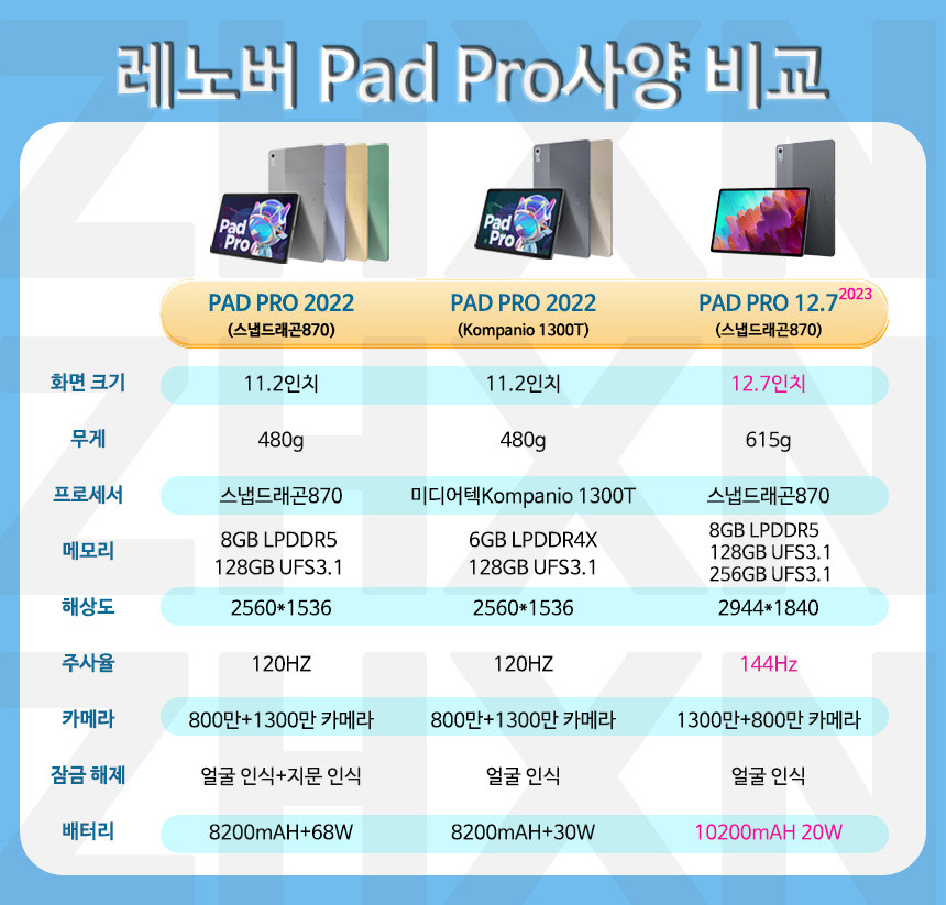 2. 레노버 12.7 패드 스펙 분석
