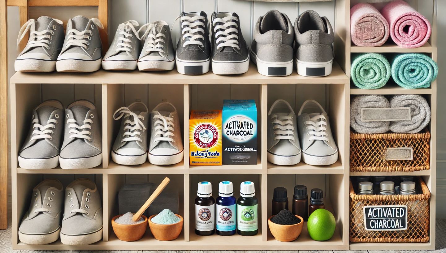 베이킹 소다, 활성탄, 그리고 에센셜 오일을 섞어 DIY 탈취제를 만들어 보세요. 작은 그릇에 이 혼합물을 담아 신발장에 놓아두면 냄새를 쉽게 제거할 수 있습니다.