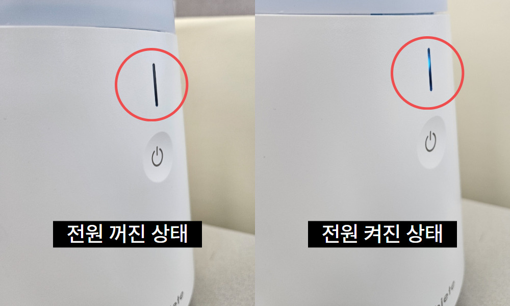 전원버튼 위에 미세하게 푸른 불빛이 보입니다.