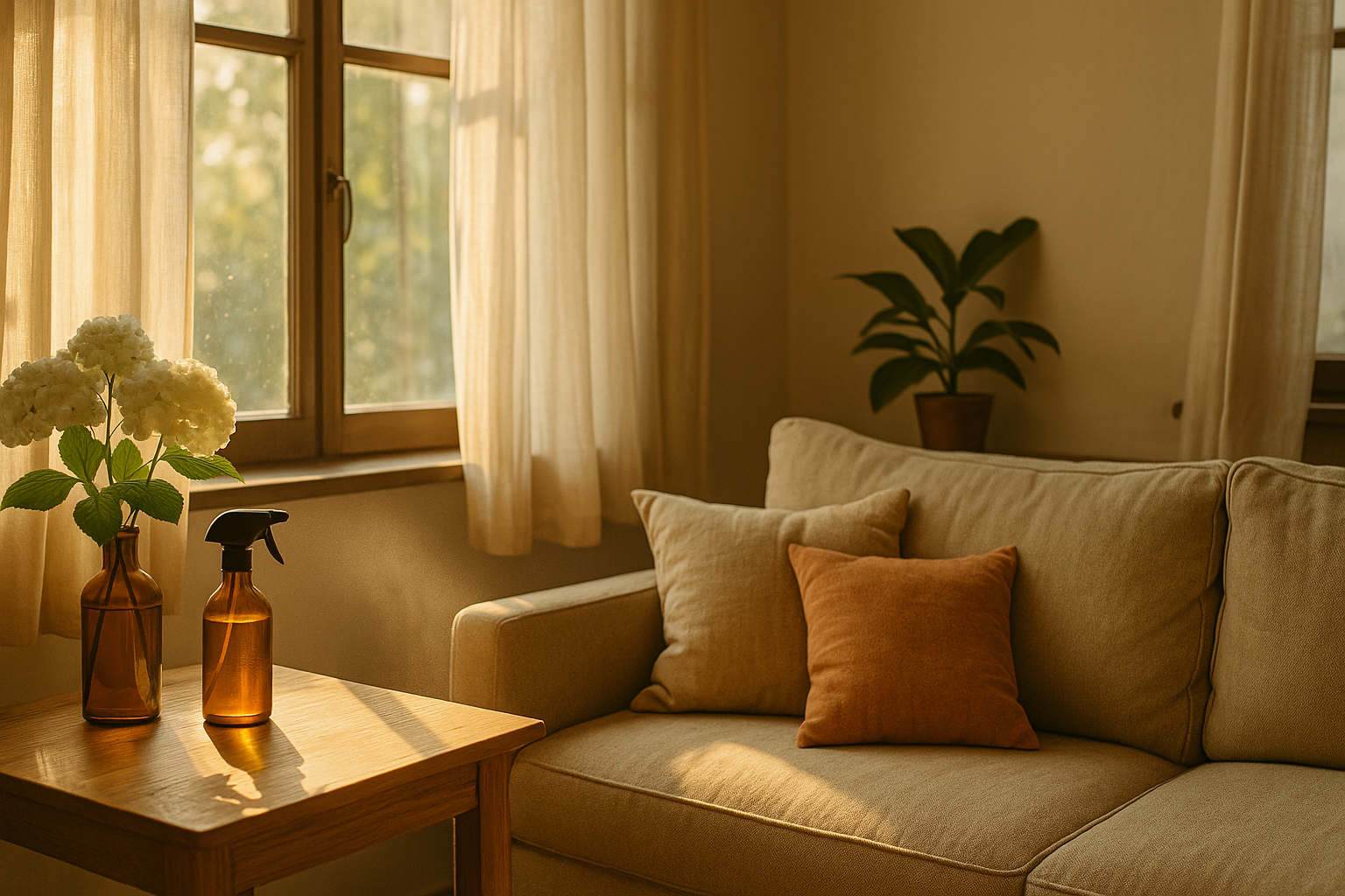 - 커튼, 소파, 창틀 주변에 가볍게 분사합니다.