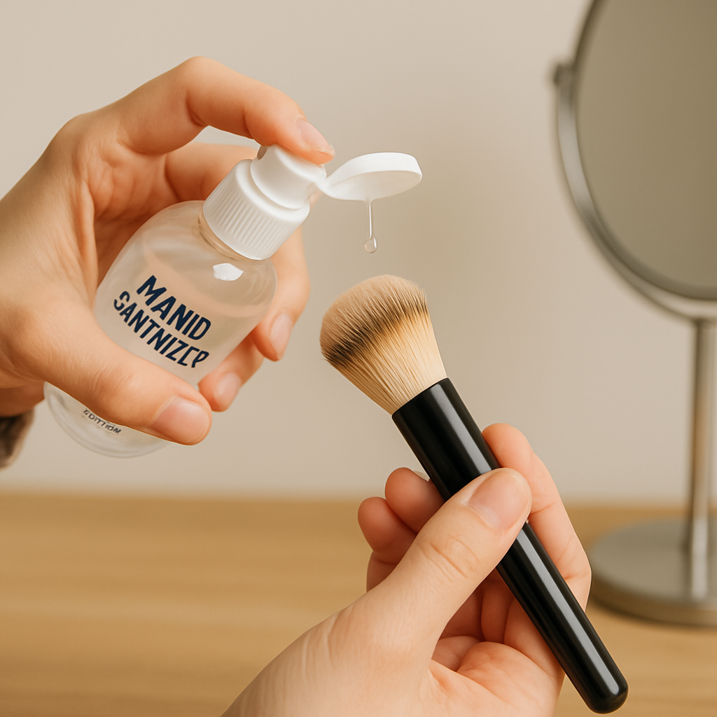 - 손소독제 젤을 화장품 브러시 끝에 소량 덜어줍니다.
