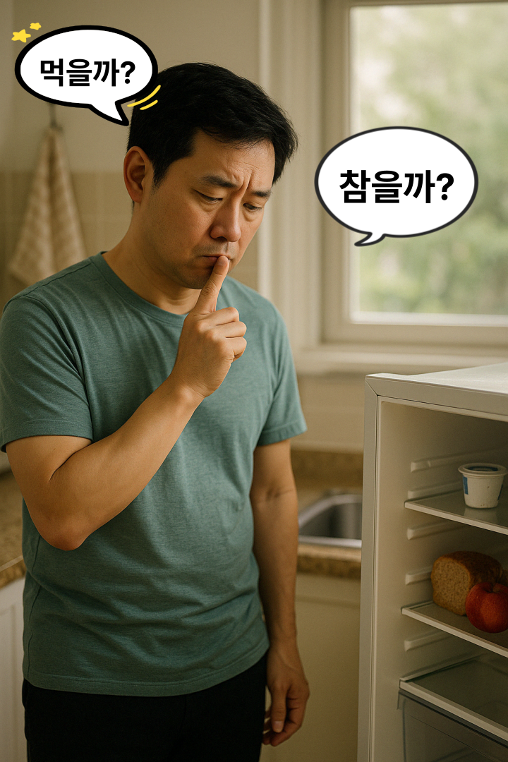 밤엔 냉장고 앞을 서성이는 자신을 발견하게 되죠.