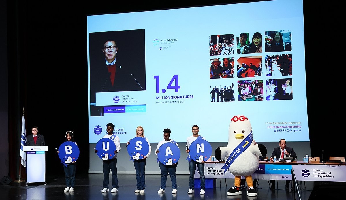 ◆행사 개요: 한국은 프랑스 파리에서 열린 국제박람회기구(BIE) 총회에서 2030 세계박람회 개최지 선정을 위한 최종 경쟁 PT를 진행했습니다. 이날 행사에는 한덕수 국무총리, 박형준 부산시장, 최태원 대한상의 회장 등이 연사로 참여했습니다.